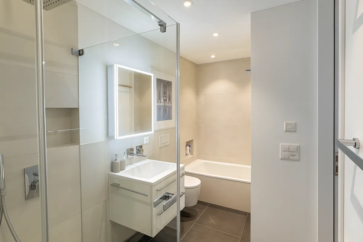 - Elegante Ausstattung: Eichenparkett, dimmbare Deckenspots, moderne Einbauschränke